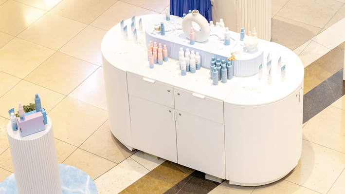 This mid-size counter offers a clean and functional setup, ideal for activations that require flexibility without compromising visual presence. With an optional top riser, generous workspace and lockable storage, it suits front-facing service, sampling or display across shopping centres, expos, branded events and private functions.