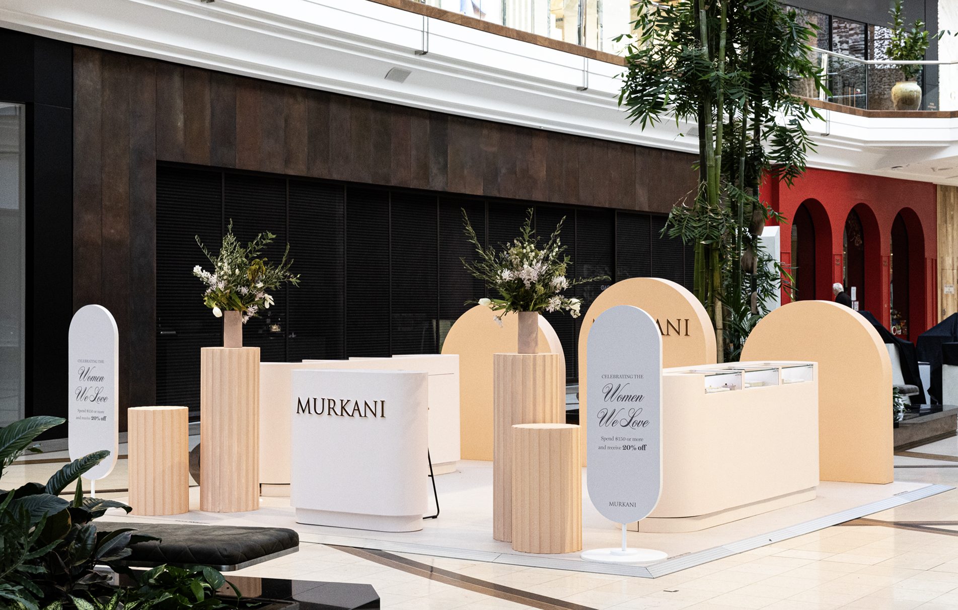 A set designed to showcase your product with ample space for customer interaction and a dynamic, eye-catching appearance. Its open layout encourages engagement, making it easy for multiple customers to explore your offerings simultaneously while enhancing the overall presentation and atmosphere of your space.