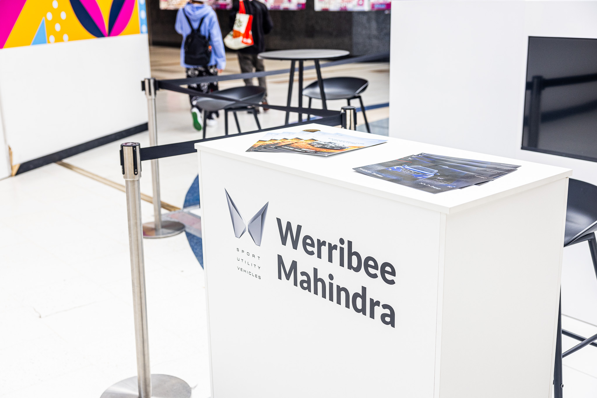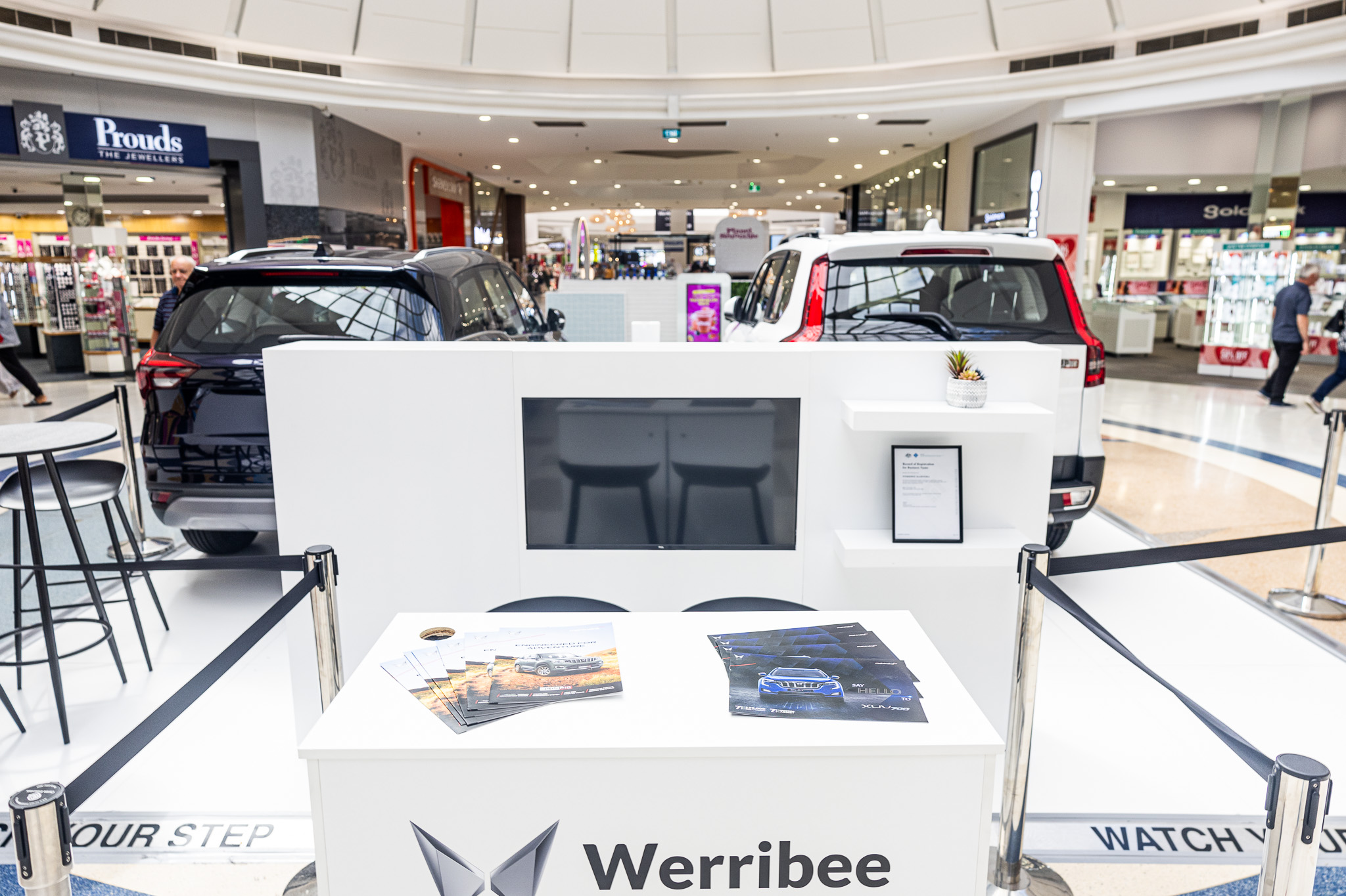 Featuring an inbuilt 40 inch TV and two floating shelves, making it ideal for showcasing digital content alongside product displays in a sleek and professional format that enhances any activation or event setup.