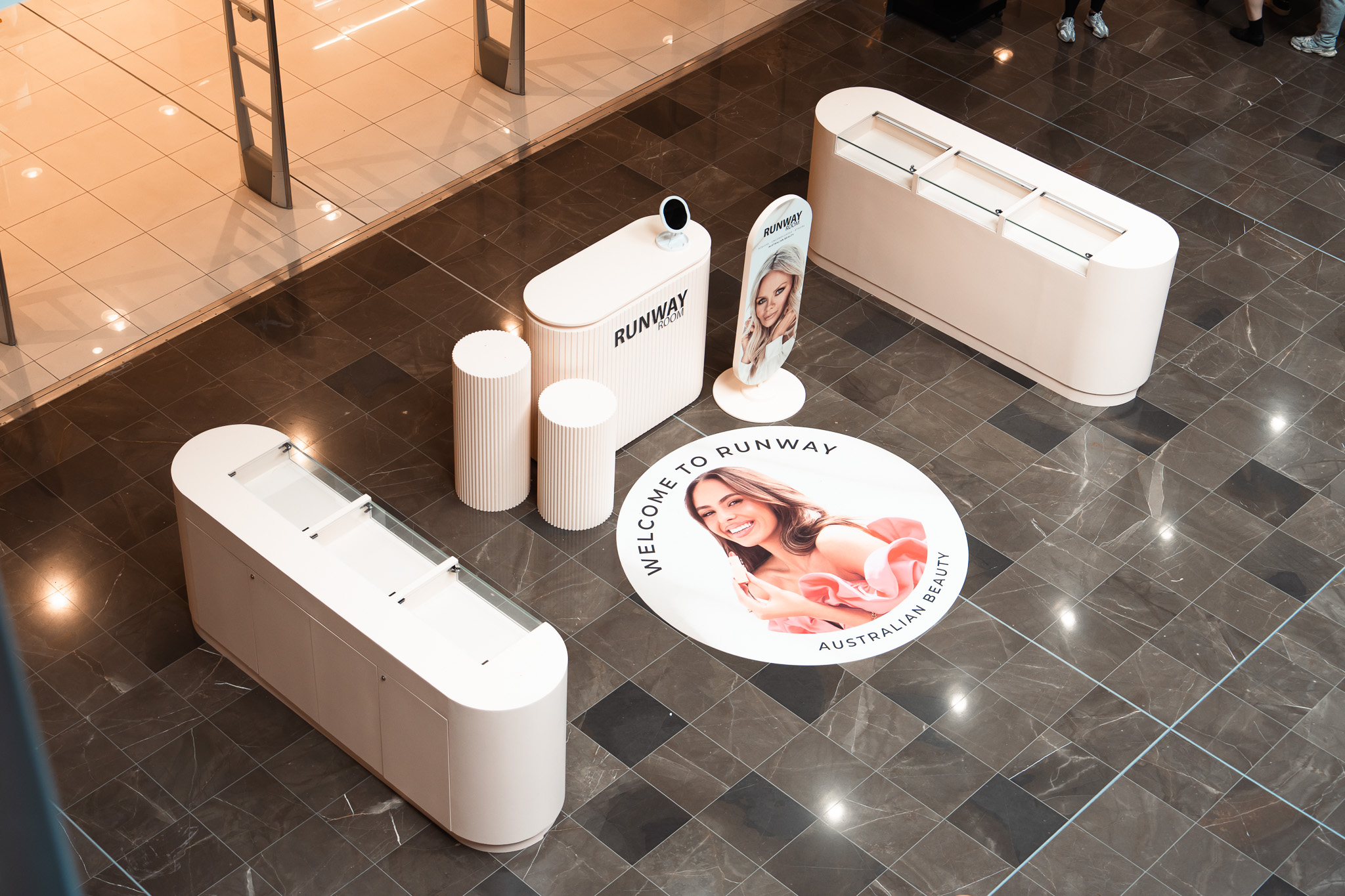 The Runway Kit is perfect for high traffic areas, combining style and functionality. It features a Fomo Plinth set, Tethy or Pill Counter, Sausage Sign Board, and Oi Oi Oi Counter set. Each element works together to create an engaging, cohesive experience that attracts visitors and reinforces brand presence, making it ideal for activations, events, or retail pop ups.