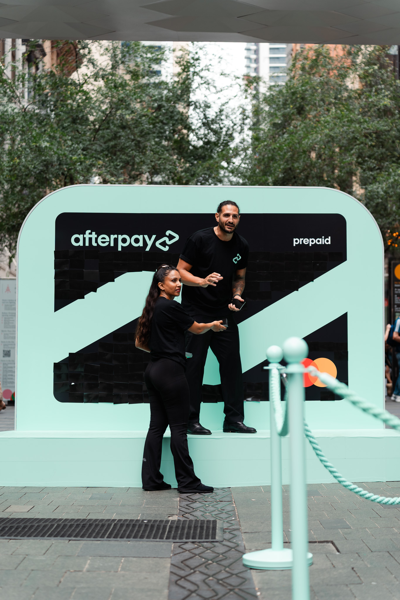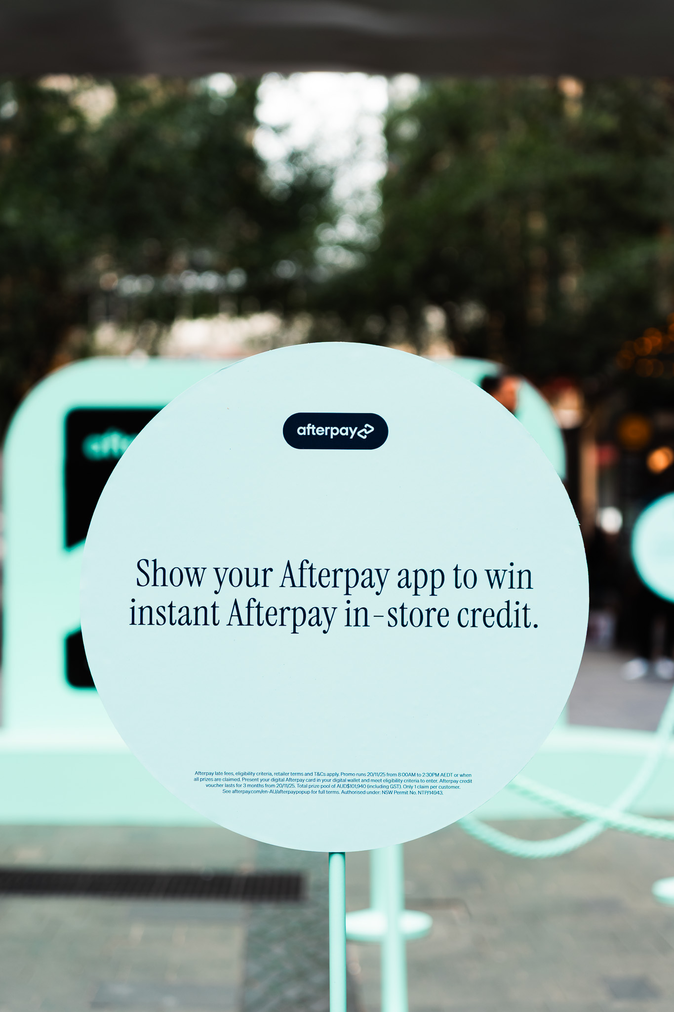 Shoppers were invited to show their Afterpay app for the chance to win instant in-store credit by peeling a panel from a life-size credit card installation. The experience created a playful moment of surprise and delight, drawing steady crowds throughout the day.