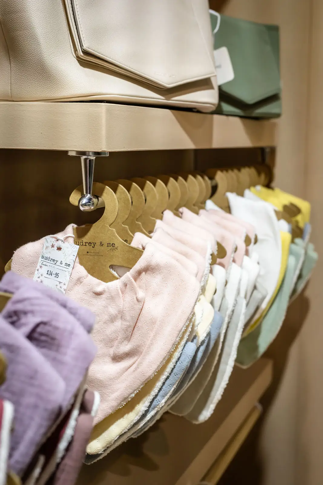 The stand featured a carefully curated mix of fixtures. Audrey & Me supplied some of their own store bought pieces, which added familiarity and brand consistency, while Ten Hats Agency contributed additional custom elements to enhance the overall layout. This combination allowed for a cohesive, well organized display that highlighted each product effectively.