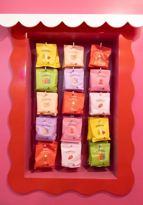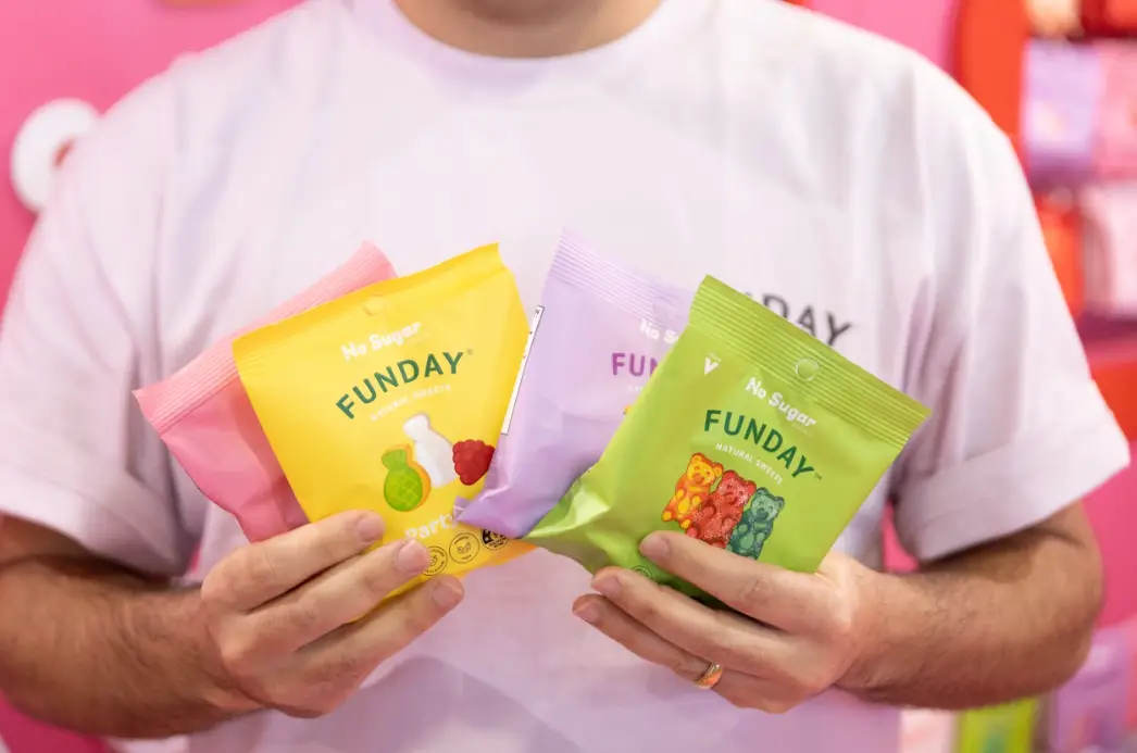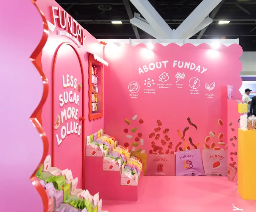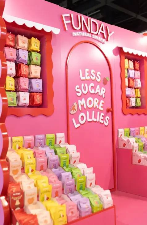 Funday turned up the flavour with a vibrant pink pop-up that was impossible to miss. With walls stacked high with colourful lolly packs, jars of sweet and sour treats, and a whimsical candy-shop vibe, the space invited shoppers to snack, smile, and scan.