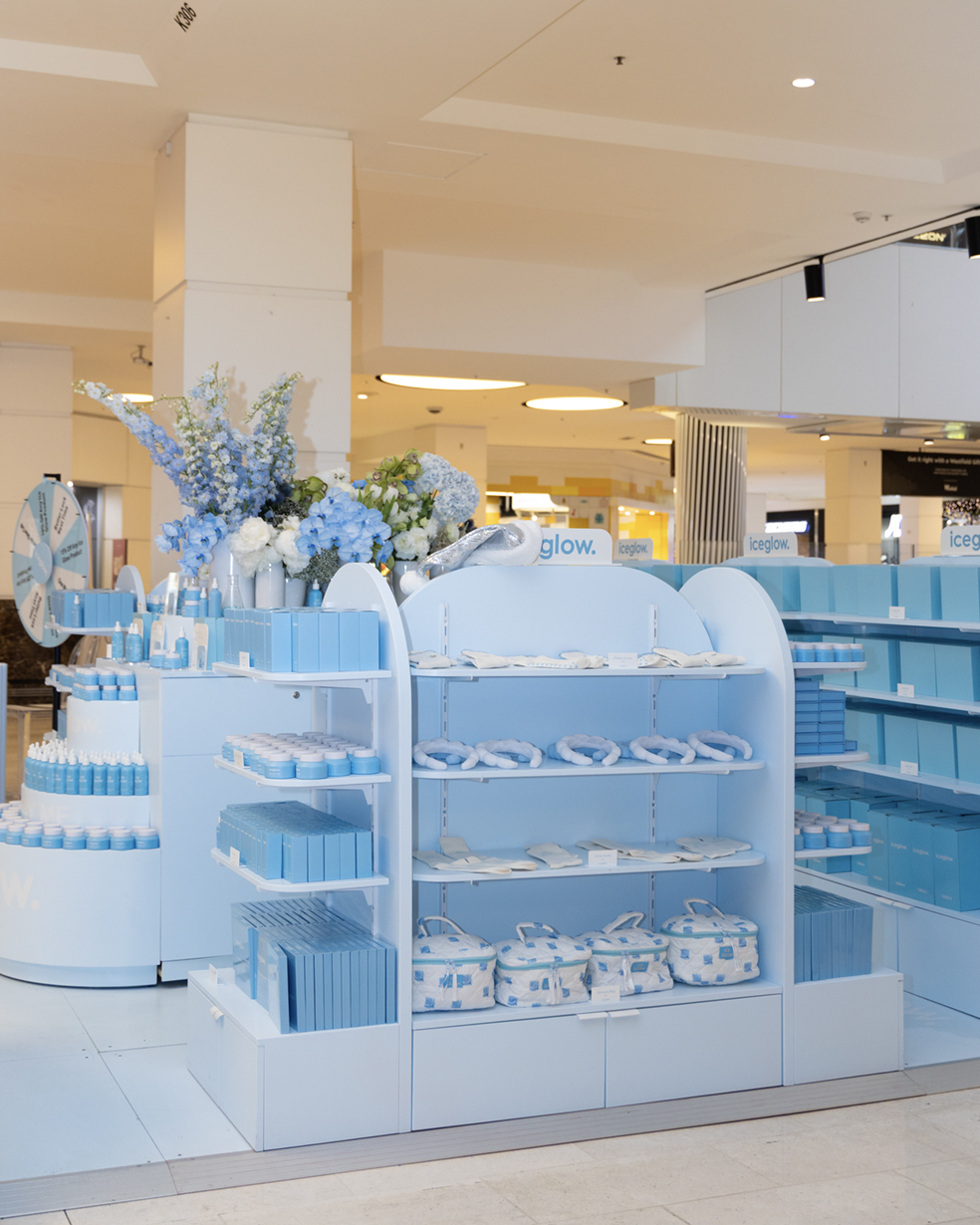 This approach ensured the pop-up felt cohesive, memorable, and engaging, translating Iceglow’s playful brand personality into a physical retail environment that invited discovery and encouraged meaningful product interaction for shoppers.