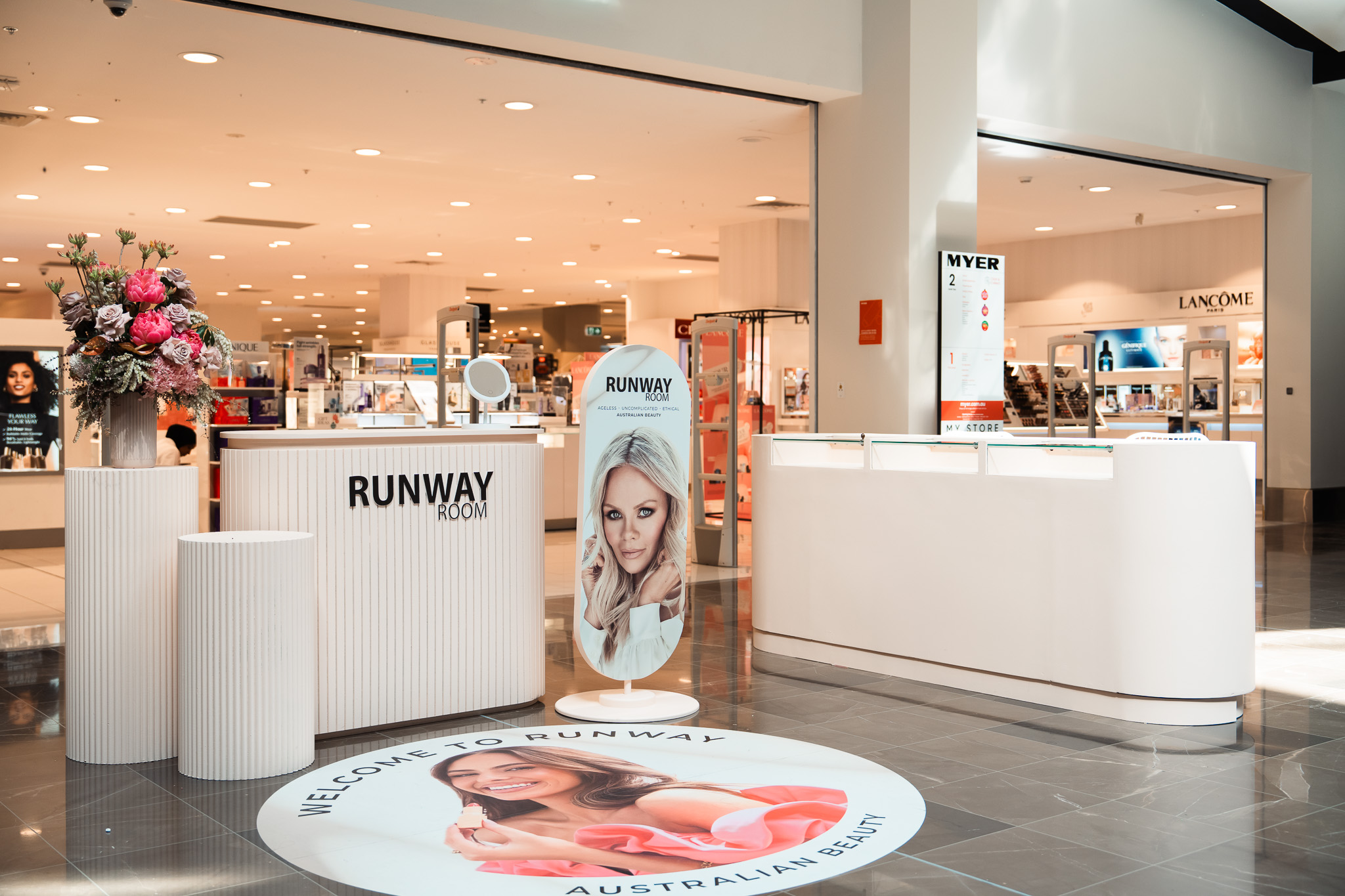 Runway Room, an Australian makeup brand available at Myer, brought beauty to life with an engaging activation at Westfield Fountain Gate. The space was designed to attract attention, showcase the brand’s premium aesthetic, and provide a functional area for live makeup sessions.