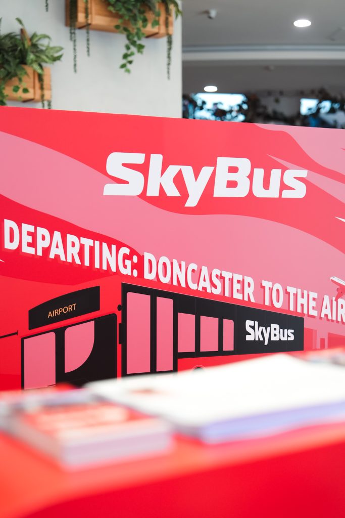 SkyBus needed a temporary pop-up to promote its new Doncaster to Airport service. The setup had to be visually striking and functional, ready to install and remove within one week.