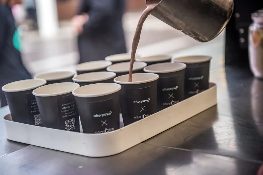 We custom created an Afterpay coffee cart for the occasion, serving freshly brewed coffee and branded Afterpay cookies to the waiting crowd.