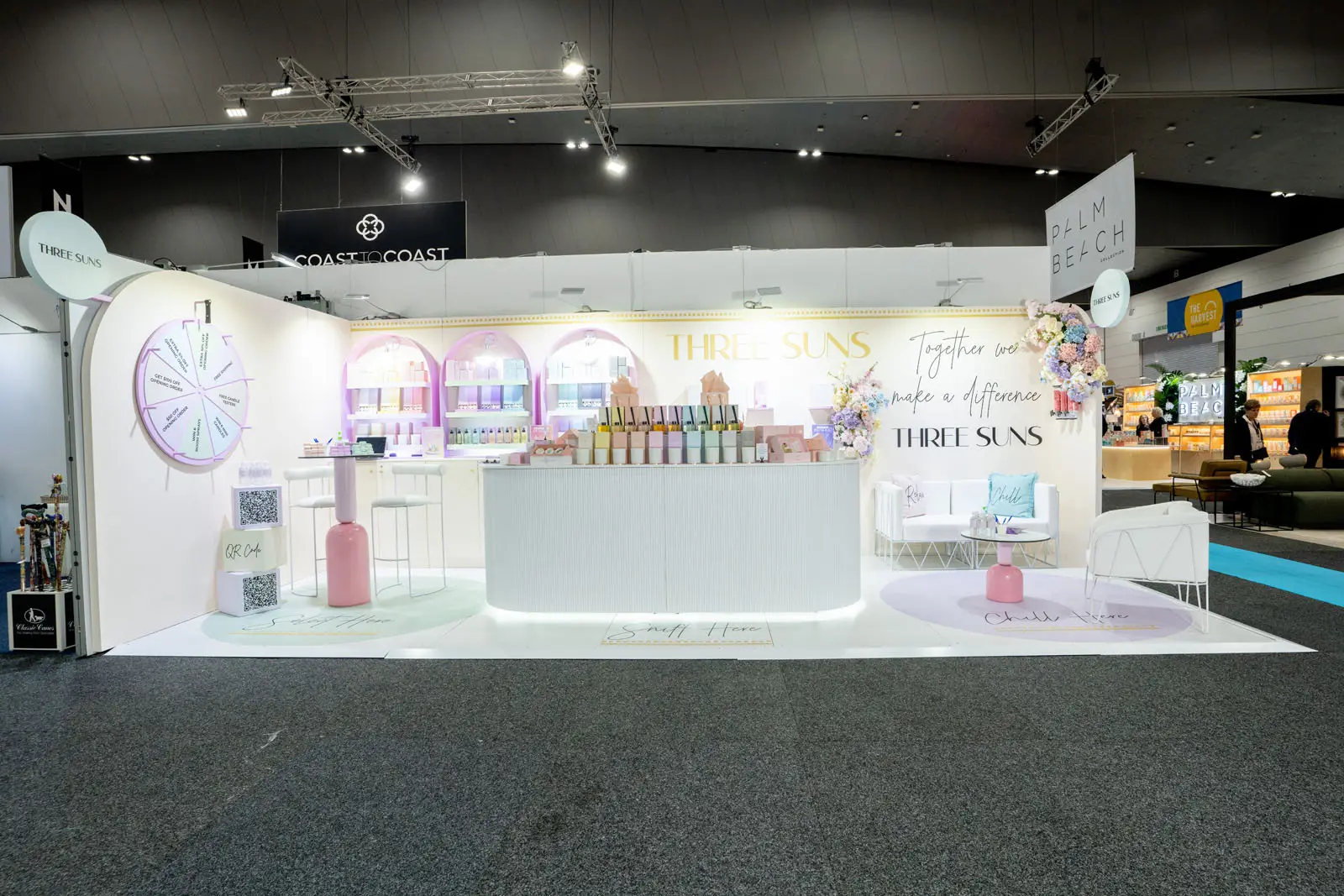 We believed from the very beginning that Three Suns had the potential to make an incredible first impression at the Reed Gift Fair. As a first-time exhibitor, the challenge was not only to introduce themselves to a wide audience but also to do so in a way that felt professional, polished, and distinctly their own. Our thinking centred on how to create a stand that didn’t just display products but told a cohesive brand story and invited visitors to engage.