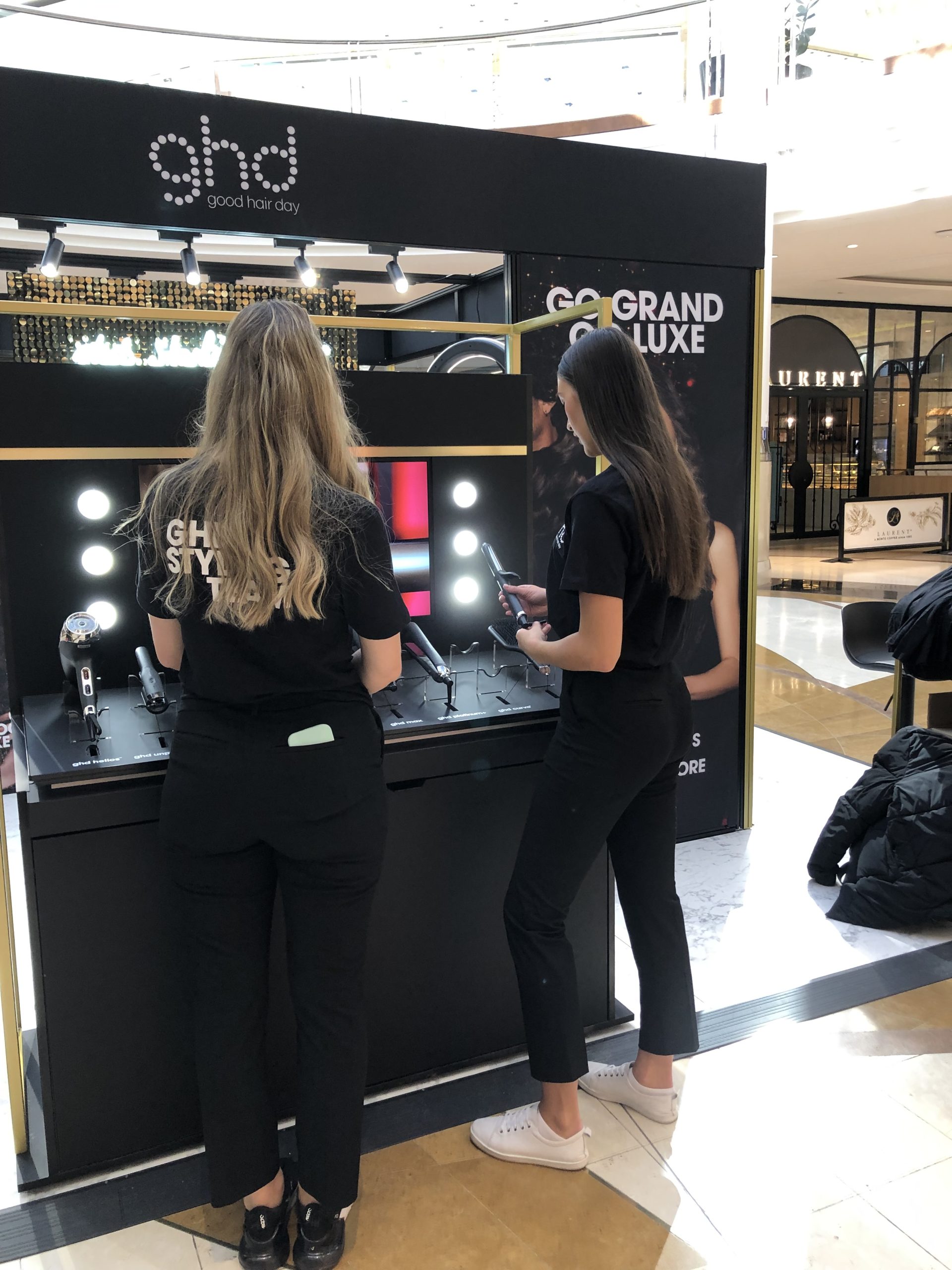 Staff also encouraged shoppers to try the straighteners for themselves, providing hands-on guidance and tips to ensure everyone had a positive and informative experience. By combining live demonstrations with personal engagement, the team built excitement and awareness around the GHD brand. Their energy, expertise, and enthusiasm transformed the activation into an interactive and memorable experience that left a lasting impression on shoppers, reinforcing GHD’s reputation for quality, style, and innovation.